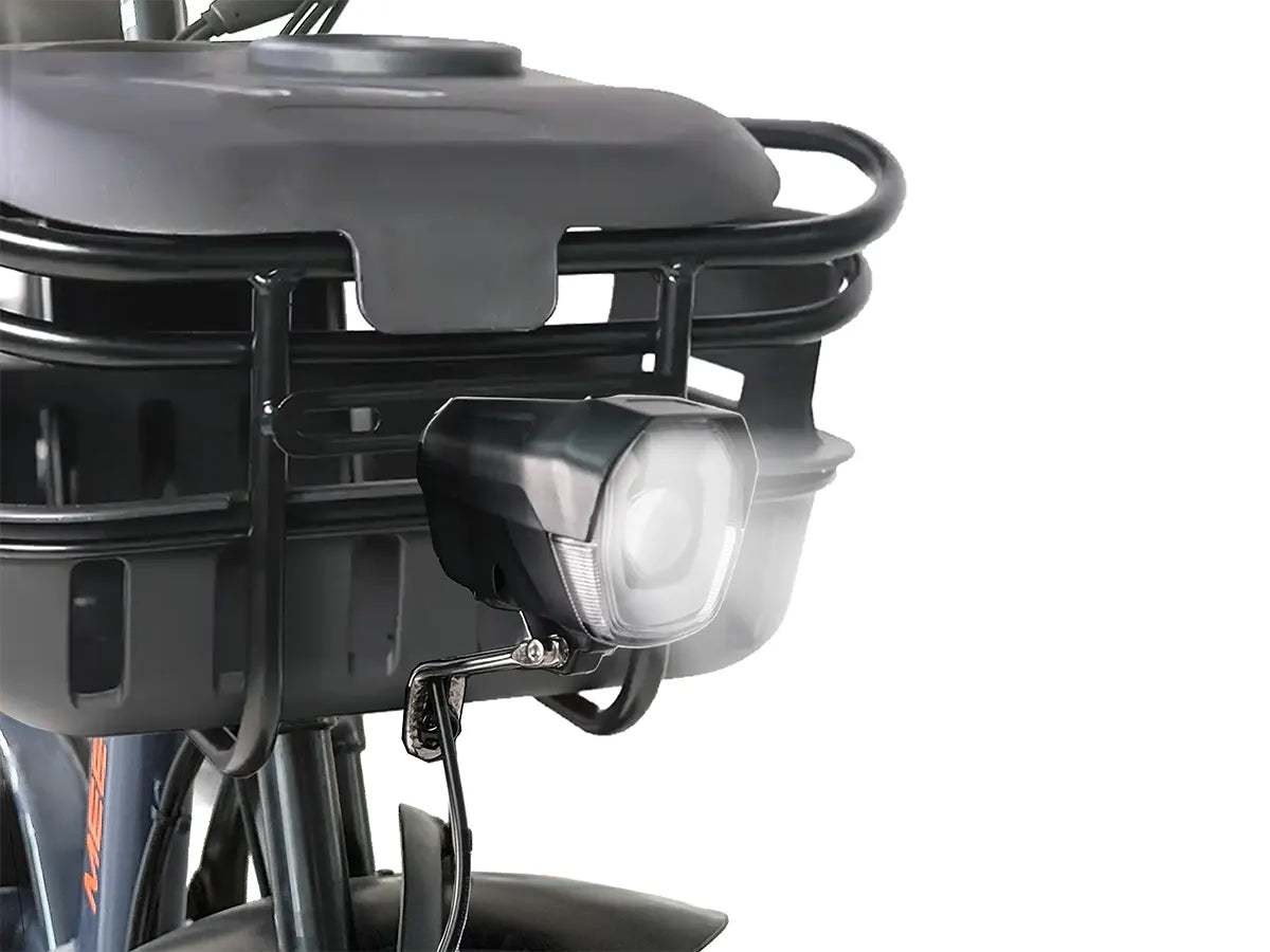 The stylish headlight, with an IP65 waterproof rating, easily cuts through gloom or fog to provide excellent visibility for night and rainy rides. The integrated rear lights flash when you brake to help prevent rear-end collisions at night.